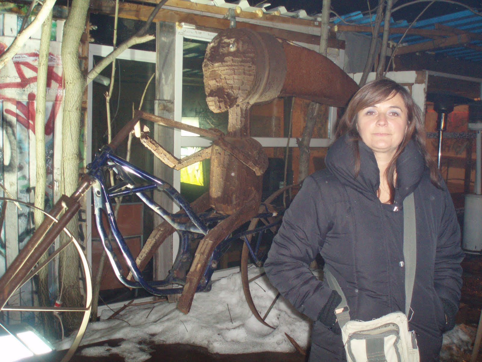 Burki i ja odlazimo prema Fridrichstasse i prema Orangenbergstrasse. Ulica je puna fenomenalnih lokala , nagovaram burkija da uđemo u jedan Zapata al on se ne da, nastavljamo dalje kad naletimo na neku komunu slikara, ulaz totalno neugledan a u dvorištu desetak straćara u kojima umjetnici, napljugani ko zmije stvaraju. totalno zanimljivo, malo me potsjetilo na Kristijaniju u Copenhagenu. Mjesto skroz zanimljivo,još zanimljivije skulpture. Na izlazu upoznajemo čovjeka koji je glasnik dobre nade, putuje Europom skuplja slike ljudi koje upoznaje. Odmah se skompao s burkijem i dogovor je pao: ovo ljeto dolazi u Hrvatsku pa će se naći s burkijem da mu i on da svoju sliku, jer su mu se skroz svidjele burkijeve slike koje mu je on pokazao na svom mobitelu.